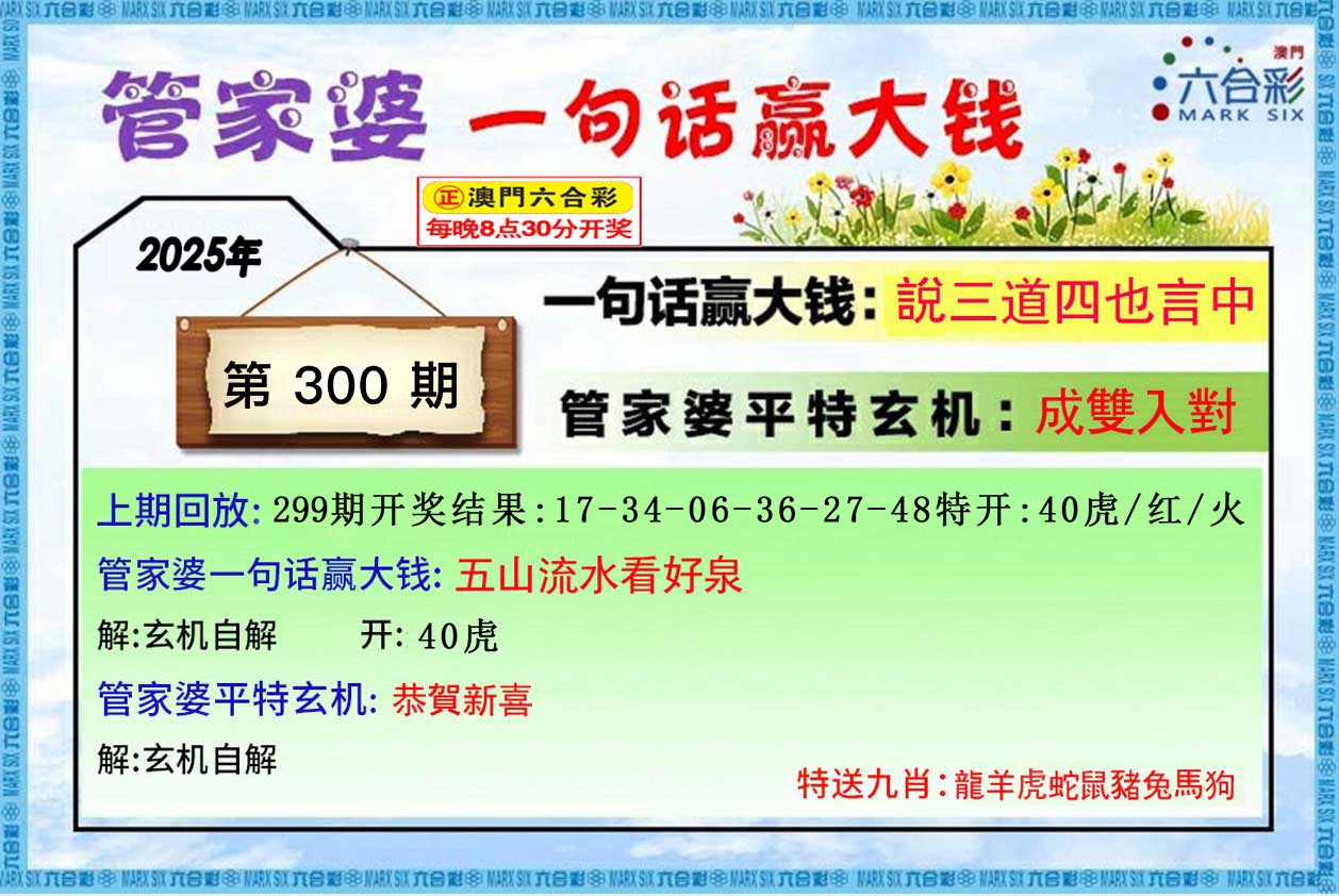300期管家婆一句话:說三道四也言中