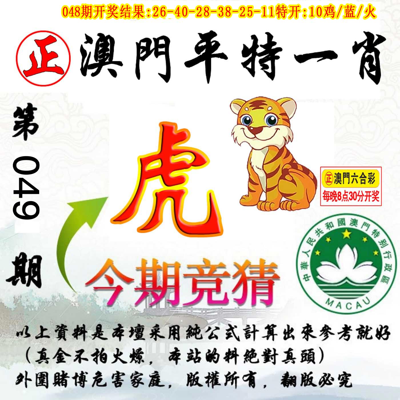 第049期:【平特一肖】虎虎虎